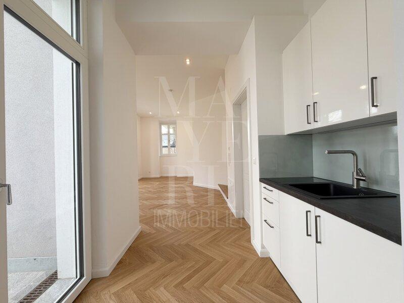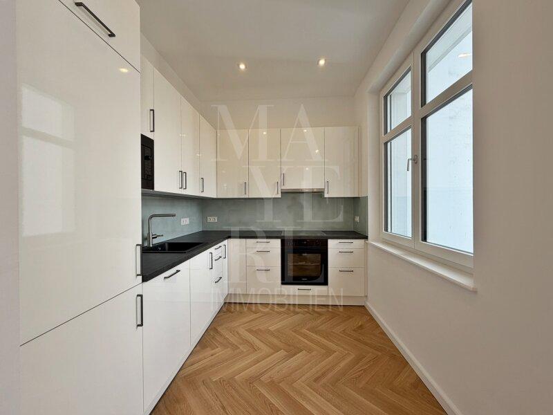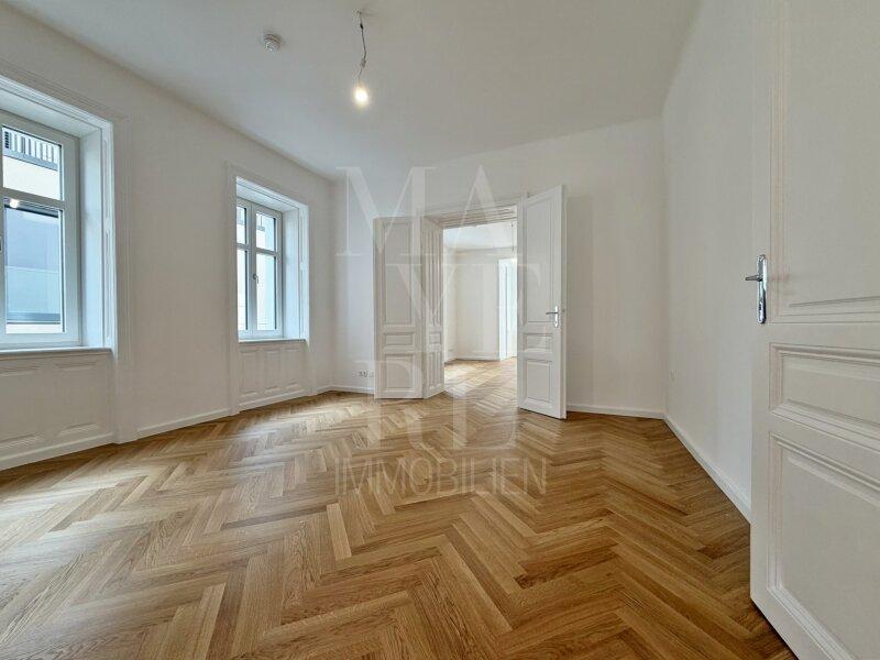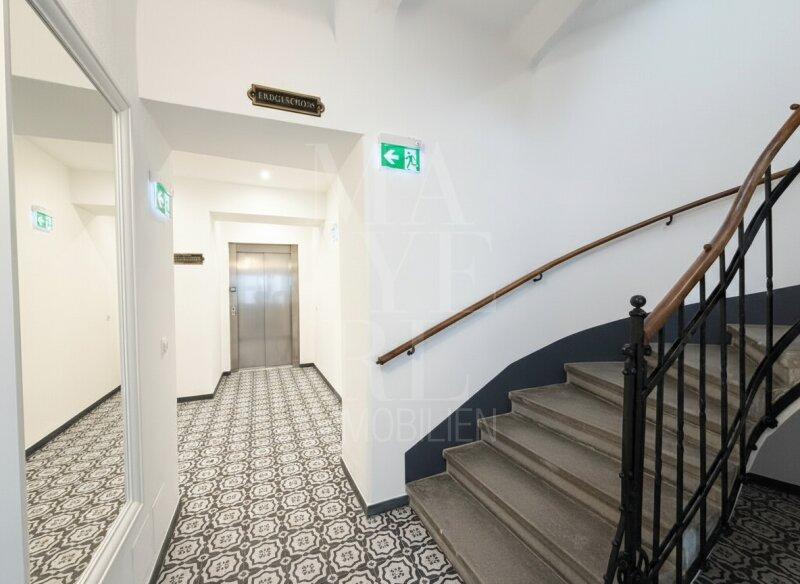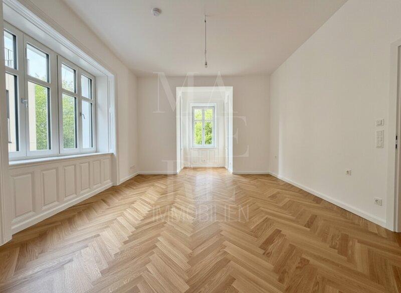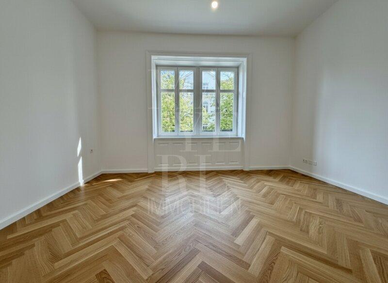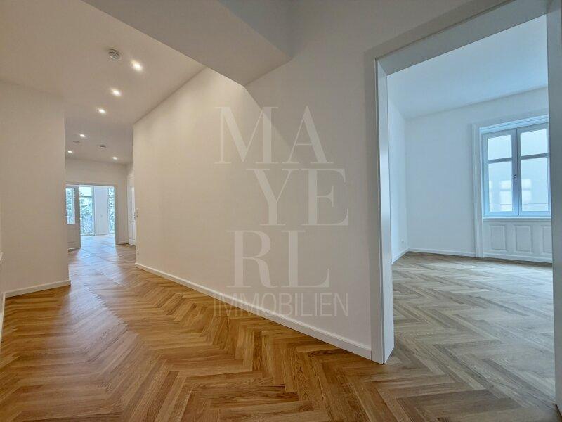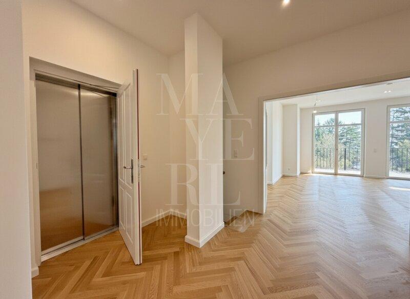 Die gegenständliche Wohnung befindet sich in einer vollständig revitalisierten Mehrparteienvilla und wurde kürzlich vollständig fertiggestellt. Der Personenaufzug führt direkt in das großzügige, zentral gelegene Entrée der Wohnung, von welchem sich die Räumlichkeiten wie folgt erschließen: