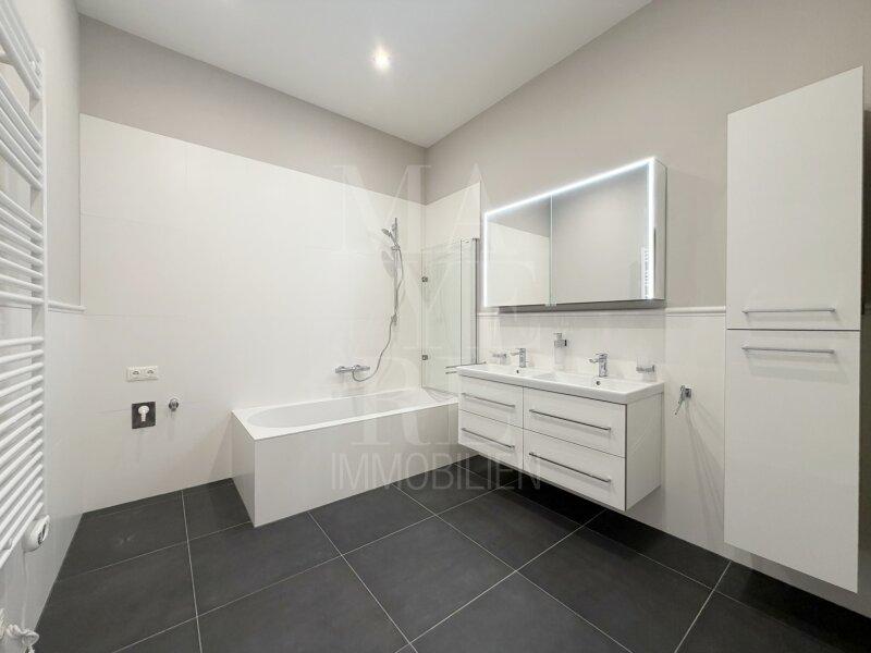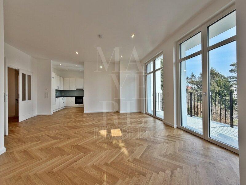 Vorraum, großzügiges Wohn-/Esszimmer mit offen gestalteter, voll ausgestatteter Küche sowie Ausgang auf den Balkon. Drei flexibel nutzbare Zimmer mit Größen zwischen ca. 16 m² und 24 m², davon eines mit eigenem Duschbad samt WC. Zusätzlich steht ein weiteres, hochwertig ausgestattetes Badezimmer mit Badewanne und Doppelwaschtisch sowie ein separates WC zur Verfügung.