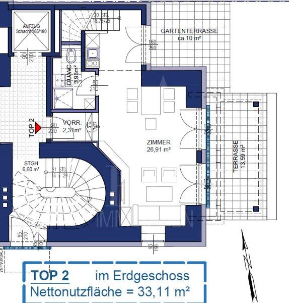 Über eine interne Treppe vom Vorzimmer erreichbar befindet sich ein großzügiger Raum mit ca. 27 m² und direktem Ausgang auf zwei Terrassen sowie in den rund 82 m² großen Eigengarten. Ebenfalls auf dieser Ebene befinden sich ein Duschbad mit WC sowie eine praktische Teeküche.