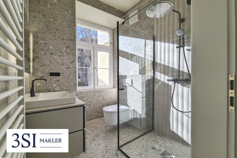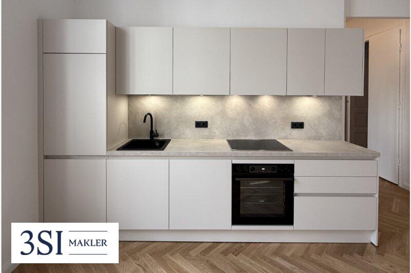 Bei dieser ansprechenden, ,in einer eleganten  Altbauliegenschaft unweit des Schlosses Belvedere gelegenen unweit des Schlosses Belvedere gelegenen Altbauliegenschaft, handelt es sich um eine hochwertig sanierte 2-Zimmer-Erstbezugswohnung im Hochparterre (fast 1.OG.) in Hofruhelage. Der Grundriss bietet eine optimale Aufteilung der insgesamt rund 40 m² Wohnfläche: Über den Vorraum gelangt man in das Badezimmer mit Dusche und Toilette sowie in die einladende voll ausgestatete Wohnküche. Daran angrenzend befindet sich das großzügige Schlafzimmer. Alle Räume sind südwestlich in den begrünten und ruhigen Innenhof ausgerichtet.