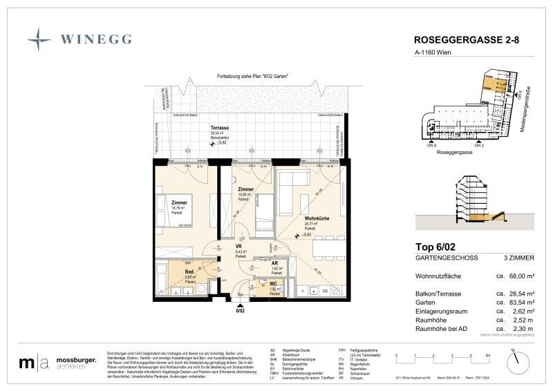In der Roseggergasse 28, nahe des Wilhelminenbergs in 1160 Wien, entstehen insgesamt 124 exklusive Eigentumswohnungen. Die Wohnflächen variieren zwischen 39 und 245 m² und bieten zwischen 2 und 6 Zimmern. Darüber hin-aus bereichern private Freibereiche wie Eigengärten, Balkone, Terrassen, Loggien und spektakuläre Dachterrassen mit Blick auf die umliegenden Wiener Berge das Wohnerlebnis.