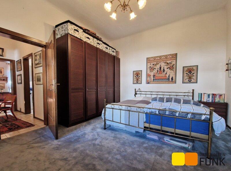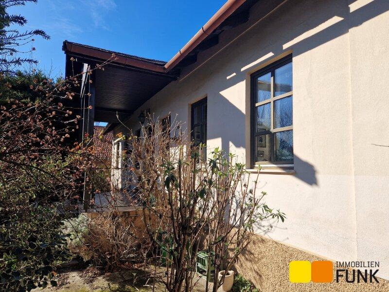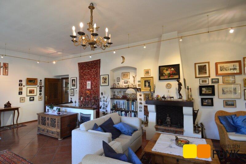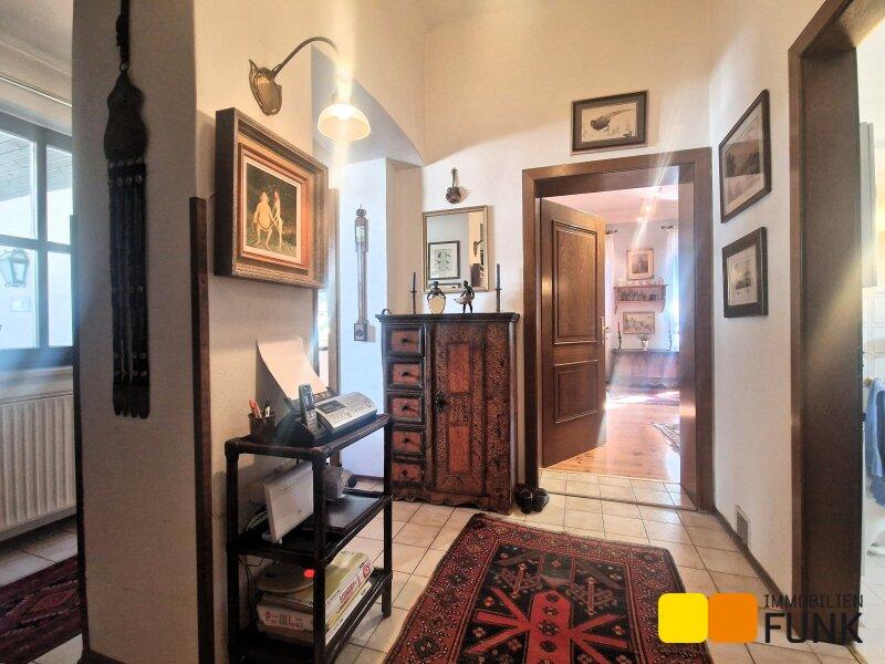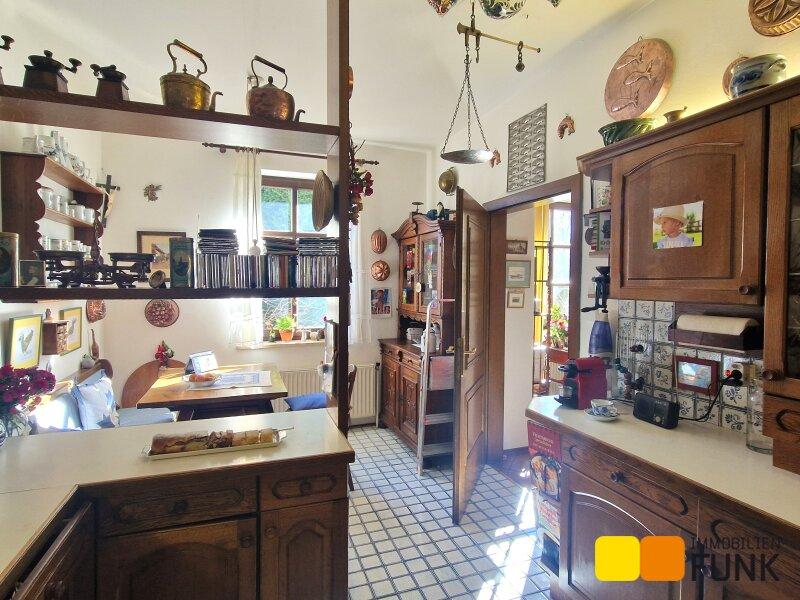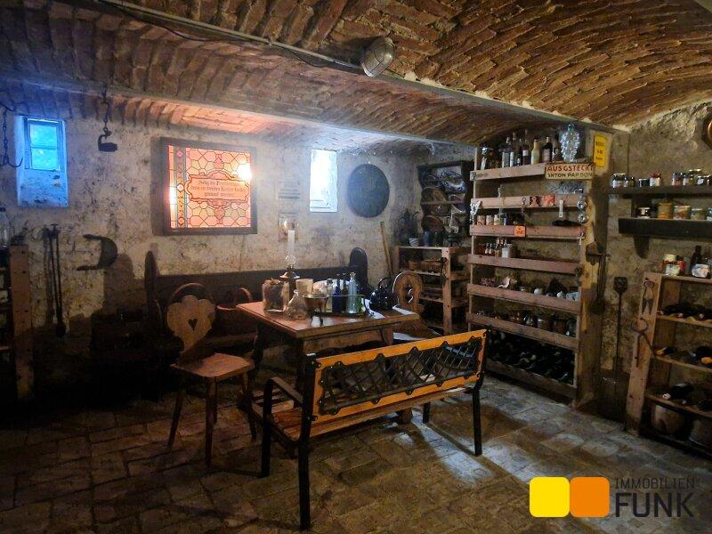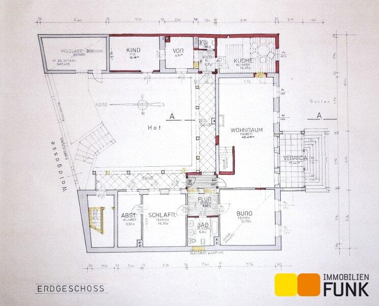 Sie betreten diese überaus attraktive Immobilie über den Vorgarten. Hier führen Eingänge links und rechts unter dem Arkadengang in das Haus. Ganz rechts, von außen zu begehen, befindet sich der Saunabereich- von hier gibt es auch einen Aufstieg zum Dachboden. Vom Vorraum gelangen Sie zu einem der Schafzimmer (ca. 16,7 m²), mit angeschlossenem Abstellraum, der etwa 9 m² Stauraum bietet. Auch vom Flur aus kommen Sie zum etwa 6,2 m² großen Badezimmer, einem weiteren Schlafzimmer mit etwa 22 m² Fläche und weiter in das Wohnzimmer. Dieser etwa 42 m² große und lichtdurchflutete Wohnbereich ist das Herzstück des Hauses Hier wärmt an Wintertagen ein offener Kamin, auch der ungewöhnliche, offene Abgang zum Ziegelgewölbekeller befindet sich hier. Das Wohnzimmer öffnet sich zur Veranda, von der Sie zum leicht abfallenden und liebevoll gestalteten Garten gelangen. Anschließend an den Wohnbereich erwartet Sie die Küche mit Essplatz. Folgen Sie dem Gang weiter, kommen Sie zum zweiten Eingang des Hauses, einem Gäste-WC und einem Kinderzimmer mit etwa 12 m². Der von außen zu begehende Holzlagerraum ergänzt das Raumangebot.