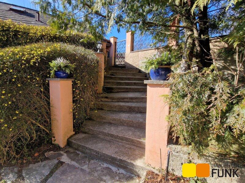 Das ursprünglich im Jahr 1886 errichtete Gebäude verfügt über eine ganz besondere und charmante Ausstrahlung. Es ist von der ruhigen Gasse über einige Stufen zugänglich und bietet einen außergewöhnlichen, an ein Atrium erinnernden Vorgarten. Es präsentiert sich in liebevoll gepflegtem Zustand und wurde über die Jahre erweitert und modernisiert. So wurden im Lauf der Jahre eine Garage, eine Terrassenmauer und ein Swimmingpool errichtet. 1988 erfolgte die Bewilligung für eine Erweiterung des Hauses, 2001 dann der Einbau der Gastherme. Eine Sauna verwöhnt an kalten Wintertagen.