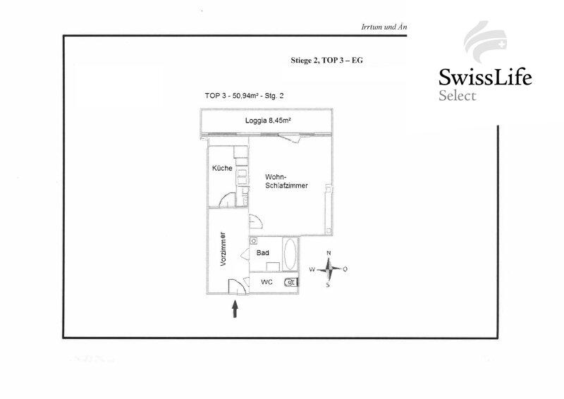 Die Wohnung befindet sich im Erdgeschoß und verfügt über eine Wohnfläche von ca. 42,49 m² sowie eine großzügige Loggia mit ca. 8,45 m², die zusätzlichen Freiraum bietet.