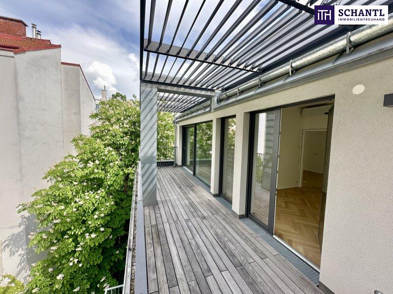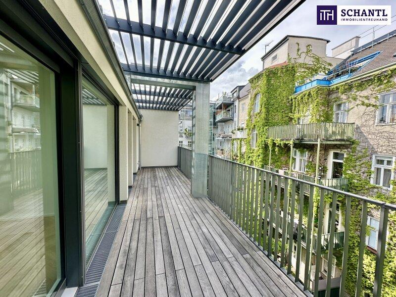 Wenn Sie nach unten schauen, liegt Ihnen die Stadt zu Füßen. Kopf hoch, und der Himmel über Wien ist zum Greifen nah. Genau so und nicht anders präsentiert sich dieses wunderbar angelegte Dachgeschoss mit all seinen Freiflächen. Hereinspaziert durch den einladenden Vorraum, mit viel Platz für Ihre Garderobe. Zur rechten Hand finden Sie das geräumige master bedroom mit en suite Badezimmer, ausgestattet mit Dusche, WC und Fenster, sowie den gemütlichen Lounge Bereich der Wohnung. Links rum erwartet Sie ein weiteres ca. 12 m² großes Schlafzimmer, ein zweites Badezimmer mit Dusche und das Gäste WC mit Handwaschbecken. Viel Platz für gemütliche Abende mit der Familie und Freunden finden Sie in dem etwa 37 Quadratmeter großen Koch- Essbereich. Ein großzügig integrierter Küchenbereich lässt die Herzen von Hobbyköchen mit Sicherheit höher schlagen. Vom Essbereich aus, gelangen Sie auf die 17 m² große Terrasse in Richtung Westen und all seinen begrünten Fassaden und Bäumen ringsum. Eine zweite, windgeschützte Terrasse komplettiert diese perfekte Wohnung im Erstbezug. So wohnt man gerne!