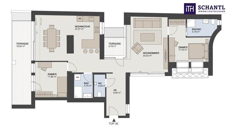 Top 30 - 3 Zimmer - mit ca. 112,20 m² WFL + ca. 20,29 m² Freifläche: KP € 1.810.000.-
