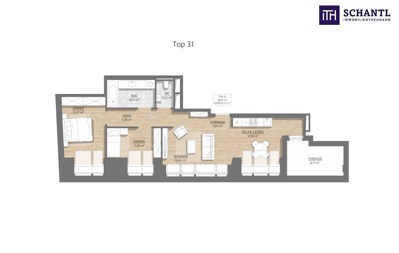 Wohnfläche: ca. 78,25 m² + Terrassen: ca. 6,71 m²