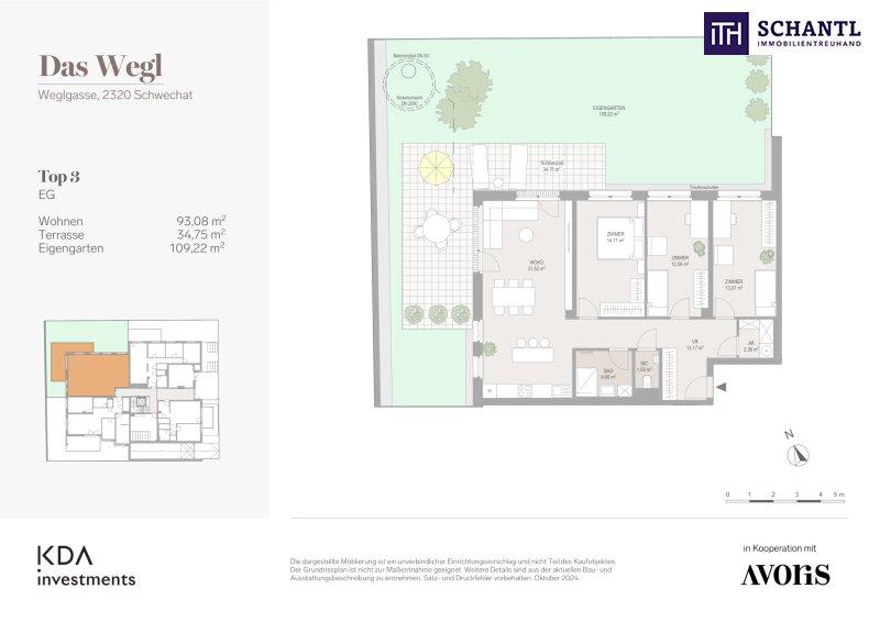 Wohnfläche: ca. 93,08 m² + Terrasse: ca. 34,75 m² + Garten: ca. 109,22 m² + Kellerabteil: ca. 2,55 m²