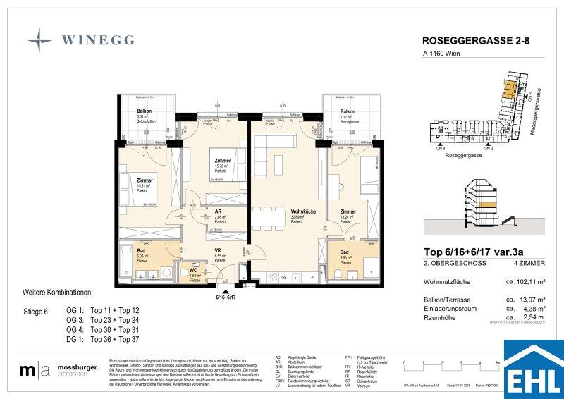 In der Roseggergasse 28, unweit des Wilhelminenbergs, entstehen 124 hochwertige Eigentumswohnungen. Die Wohnflächen reichen von ca. 39 m² bis 245 m² und bieten Grundrisse mit zwei bis sechs Zimmern ideal für unterschiedlichste Wohnbedürfnisse.