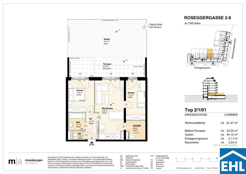 In der Roseggergasse 28, unweit des Wilhelminenbergs, entstehen 124 hochwertige Eigentumswohnungen. Die Wohnflächen reichen von ca. 39 m² bis 245 m² und bieten Grundrisse mit zwei bis sechs Zimmern ideal für unterschiedlichste Wohnbedürfnisse.