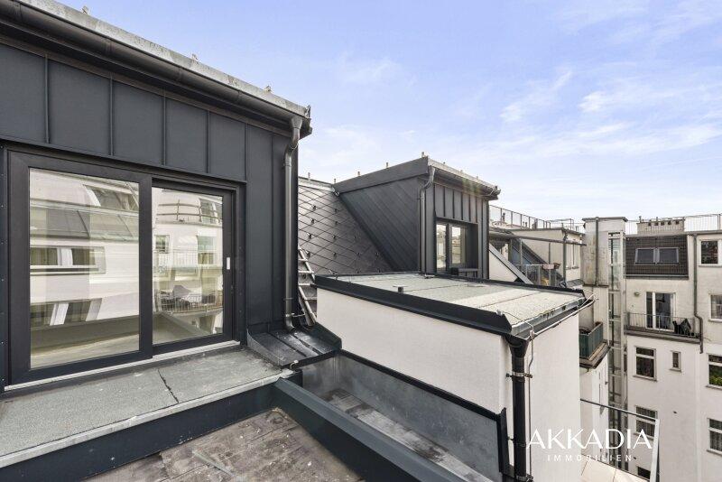 Diese einzigartige Wohnung befindet sich im neuem Dachgeschoß, das per Lift zu erreichen ist. Die Immobilie erstreckt sich über zwei Etagen und besticht mit zwei wunderschönen Terrassen und einer großzügigen Wohnfläche von ca. 103 m². Die Wohnung verfügt in der 1. Etage über einen Vorraum mit Abstellraum, zwei Schlafzimmer, zwei Badezimmer mit Dusche sowie zwei separate WCs. Der Master-Bedroom verfügt über ein privates Badezimmer. Moderne Stufen führen in offenem Stil in die 2. Etage, in der sich die Wohnküche samt zwei separaten Terrassenzugängen befindet. Eine gemütliche und kaum einsehbare Freifläche bietet einen ruhigen Rückzugsort an warmen Sommertagen. Das Herzstück der Wohnung ist die fulminante Dachterrasse von der aus man einen atemberaubenden Ausblick auf die umliegende Stadt, auf den Kahlenberg sowie auf den Stephansdom hat. Darüber hinaus verfügt die Wohnung über eine Fußbodenheizung mit Einzelraumsteuerung sowie über eine Videogegensprechanlage, eine Sicherheitseingangstüre und Alt-Wien-Stil Innentüren. Im gesamten Wohnbereich ist hochwertiger Parkettboden verlegt. Eine Klimaanlage ist vorhanden.