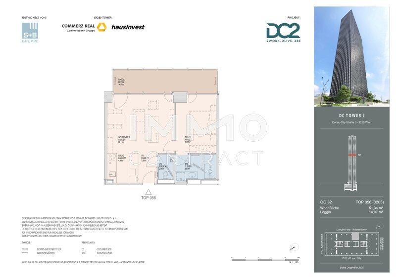 Der DC2 Tower zählt mit 52 Stockwerken und 314 hochwertigen Wohnungen ab dem 32. Obergeschoß zu den spektakulärsten Wohnprojekten des Landes. Die Wohnungsgrößen von ca. 30 bis 260 Quadratmetern bieten ein bewusst vielfältiges Angebot von intelligent geplanten Einzimmerstudios über komfortable Familienwohnungen bis hin zu großzügigen Fünfzimmer-Maisonettewohnungen. Jede Einheit überzeugt durch durchdachte Grundrisse, hohe Wohnqualität und großzügige Fensterflächen, die den Blick nach außen inszenieren und die Stadt Teil des Wohnraums werden lassen. Loggien, Balkone und Freiräume erweitern den Wohnbereich und machen die beeindruckende Höhe unmittelbar erlebbar.