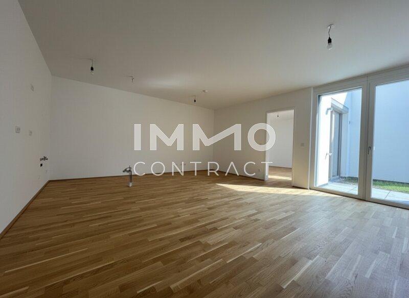 Willkommen in Ihrem neuen Zuhause: Diese großzügige, komplett hofseitig ausgerichtete 3-Zimmer-Gartenwohnung überzeugt mit rund 91 m² Wohnnfläche, zwei Terrassen sowie einem privaten Garten. Die helle Wohnküche mit direktem Zugang zur südostseitigen Gartenterrasse bildet das Herzstück der Wohnung und schafft einen fließenden Übergang zwischen Innen- und Außenbereich. Zwei komfortable Zimmer eines davon mit großzügigem Schrankraum bzw. Garderobe verfügen jeweils über ein eigenes en-suite Badezimmer und sorgen für hohen Wohnkomfort sowie ein angenehmes Maß an Privatsphäre. Großzügige Fensterflächen durchfluten die Räume mit Tageslicht und verleihen der Wohnung eine besonders freundliche und einladende Atmosphäre. Ein separates WC im Eingangsbereich, ein praktischer Abstellraum sowie ein Kellerabteil runden dieses attraktive Wohnangebot perfekt ab.