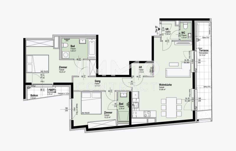 - Private Freiflächen mit Wasseranschlüssen (Loggia, Balkon, Terrasse oder Eigengarten)