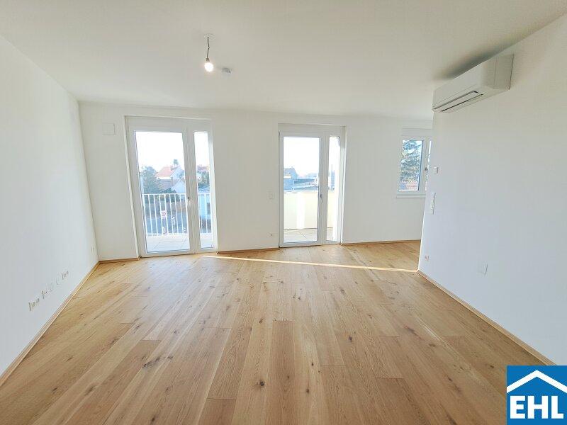 Hier stehen 83 attraktive, bereits bezugsfertige Wohnungen, umgeben von großzügigen Freiflächen, zum Verkauf. Ob mit einem gemütlichen Eigengarten, Balkon oder Terrasse diese neue Wohnhausanlage bietet für jeden Wunsch die perfekte Außenfläche.