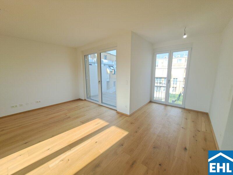 Hier stehen 83 attraktive, bereits bezugsfertige Wohnungen, umgeben von großzügigen Freiflächen, zum Verkauf. Ob mit einem gemütlichen Eigengarten, Balkon oder Terrasse diese neue Wohnhausanlage bietet für jeden Wunsch die perfekte Außenfläche.