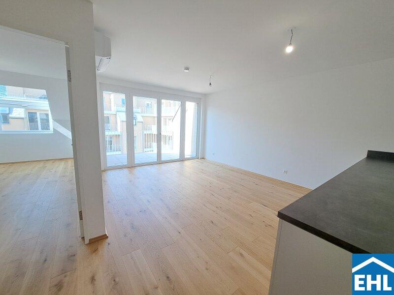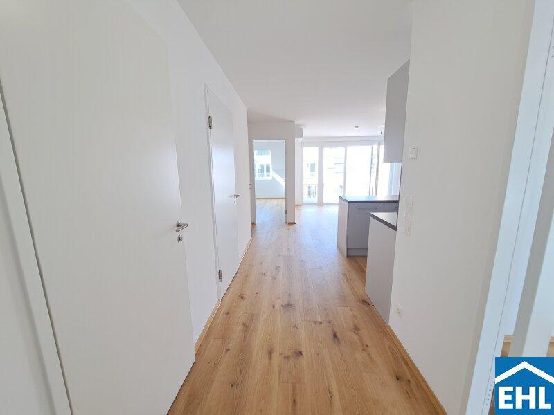 Hier stehen 83 attraktive, bereits bezugsfertige Wohnungen, umgeben von großzügigen Freiflächen, zum Verkauf. Ob mit einem gemütlichen Eigengarten, Balkon oder Terrasse diese neue Wohnhausanlage bietet für jeden Wunsch die perfekte Außenfläche.