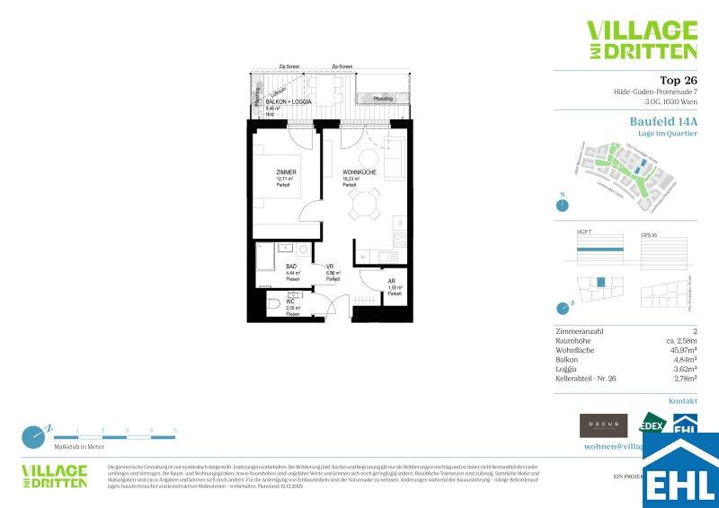 Im dritten Wiener Gemeindebezirk entsteht mit dem VILLAGE IM DRITTEN ein neues Stück Stadt eines der größten Stadtentwicklungsgebiete Wiens. Auf über elf Hektar entwickelt die ARE Austrian Real Estate gemeinsam mit der Stadt Wien und dem wohnfonds_wien ein lebendiges, nahezu autofreies Quartier mit rund 2.000 Wohnungen, Büro- und Gewerbeflächen, Kinderbetreuung, Bildungseinrichtungen und Nahversorgung. Das grüne Herz bildet der über 2 Hektar große Bert-Brecht-Park eine Oase für Erholung, Begegnung und Spiel. Alle Dächer, die nicht begehbar sind, werden begrünt. Sharing-Angebote, Einkaufsmöglichkeiten und Gastronomie liegen direkt vor der Haustüre. Nachhaltigkeit, kurze Wege und hohe Lebensqualität sind die Leitlinien dieses neuen Stadtviertels.