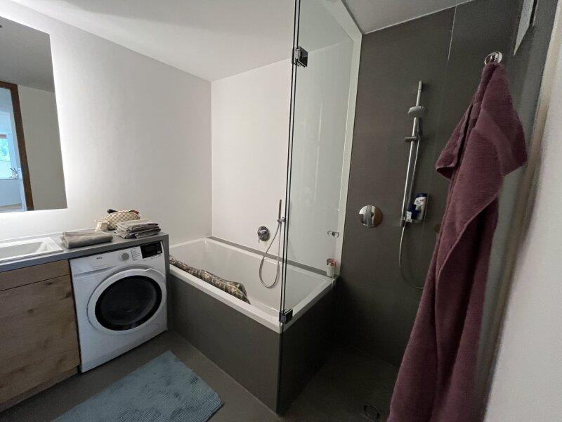 Das neuwertige Badezimmer ist mit einer Badewanne und einer Walk-in Dusche sowie einem Waschbecken mit modernen Fliesen ausgestattet. Die Toilette ist getrennt begehbar und mit einem Handwaschbecken eingerichtet. Geheizt wird über eine Luftwärmepumpe mit der Fußbodenheizung.