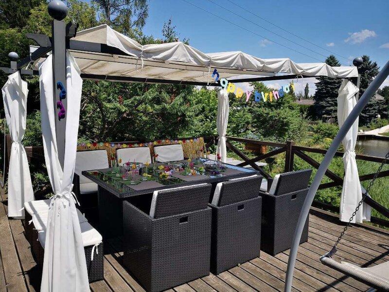 Die Liegenschaft in Massivbauweise hat Charme und gliedert sich in einen großen Wohnraum, ein Bad mit WC, eine kleine Küche, ein Schlafzimmer und ein Kabinett. Der Wohnraum und die Terrasse gehen beinahe nahtlos ineinander über, nur getrennt durch eine Glasfront mit großer Schiebetüre. Die Terrasse selbst ist mit ca. 27 m² recht gut dimensioniert, zusätzlich gibt es noch einen schönen Grillplatz, wo weitere 4 Personen Platz finden würden.