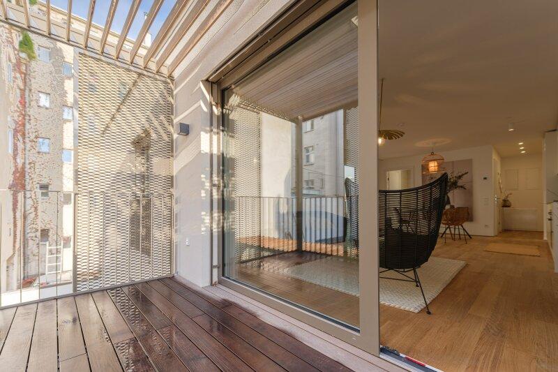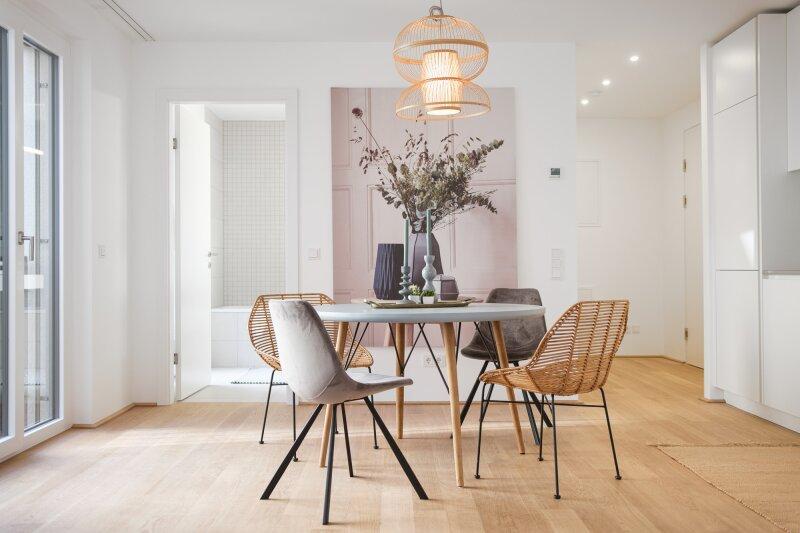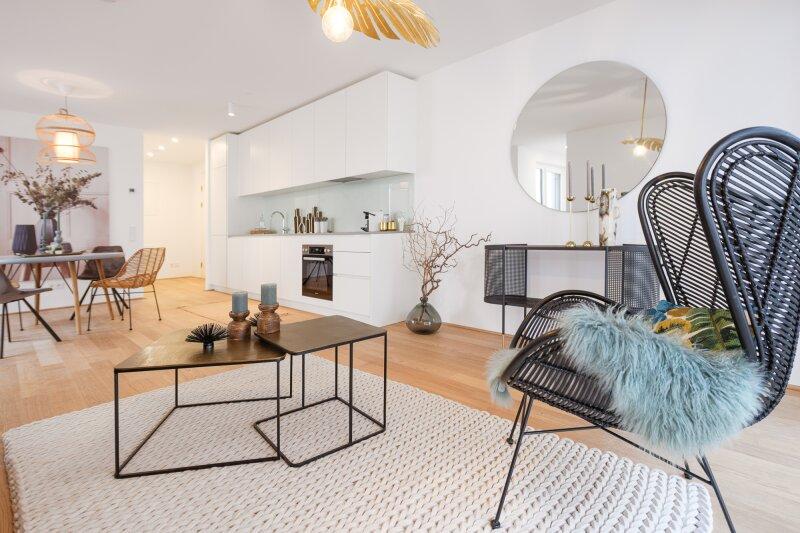 Jede Wohnung ist nicht nur mit einer Freifläche ausgestattet, sondern weißt auch hochwertige Materialien als auch Ausstattung aus: