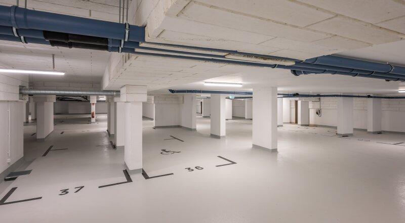 Das Haus verfügt über eine großzügige Tiefgarage. Die Anmietung eines Stellplatzes kostet monatlich 120,00 € inkl. BK und USt.