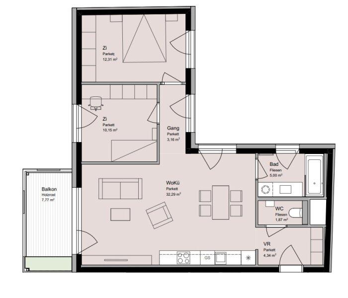 Raumaufteilung: Haus 8 Top 12