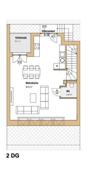 Diese einzigartige Wohnung befindet sich im neuem Dachgeschoß, das per Lift zu erreichen ist. Die Immobilie erstreckt sich über zwei Etagen und besticht mit zwei wunderschönen Terrassen und einer großzügigen Wohnfläche von ca. 103 m². Die Wohnung verfügt in der 1. Etage über einen Vorraum mit Abstellraum, zwei Schlafzimmer, zwei Badezimmer mit Dusche sowie zwei separate WCs. Der Master-Bedroom verfügt über ein privates Badezimmer. Moderne Stufen führen in offenem Stil in die 2. Etage, in der sich die Wohnküche samt zwei separaten Terrassenzugängen befindet. Eine gemütliche und kaum einsehbare Freifläche bietet einen ruhigen Rückzugsort an warmen Sommertagen. Das Herzstück der Wohnung ist die fulminante Dachterrasse von der aus man einen atemberaubenden Ausblick auf die umliegende Stadt, auf den Kahlenberg sowie auf den Stephansdom hat. Darüber hinaus verfügt die Wohnung über eine Fußbodenheizung mit Einzelraumsteuerung sowie über eine Videogegensprechanlage, eine Sicherheitseingangstüre und Alt-Wien-Stil Innentüren. Im gesamten Wohnbereich ist hochwertiger Parkettboden verlegt. Eine Klimaanlage ist vorhanden.