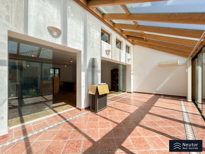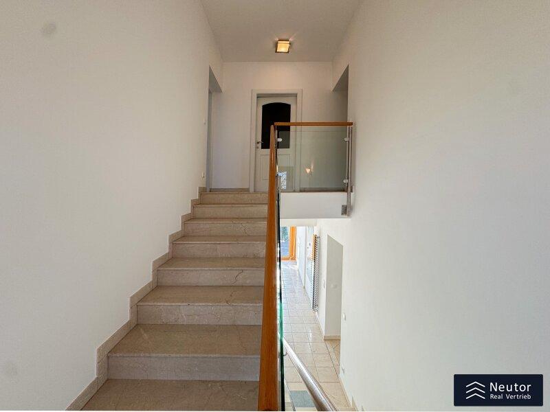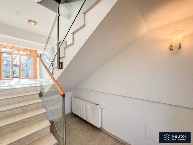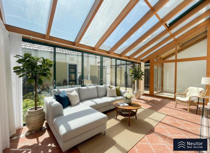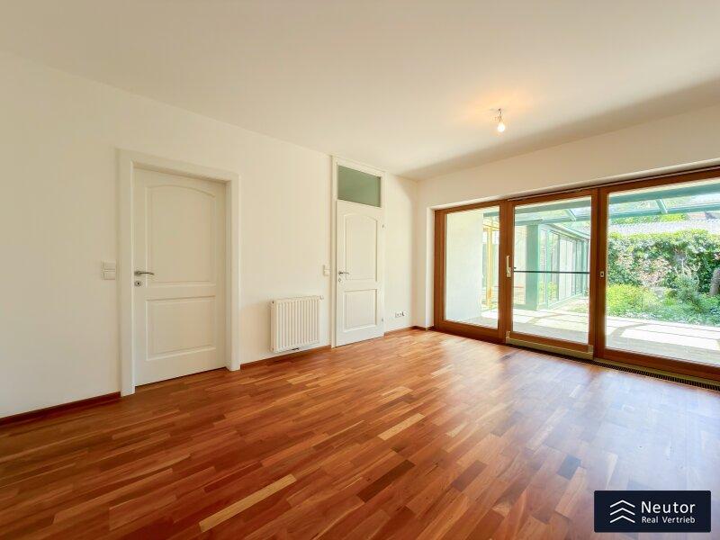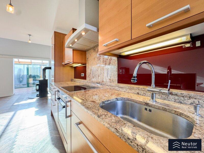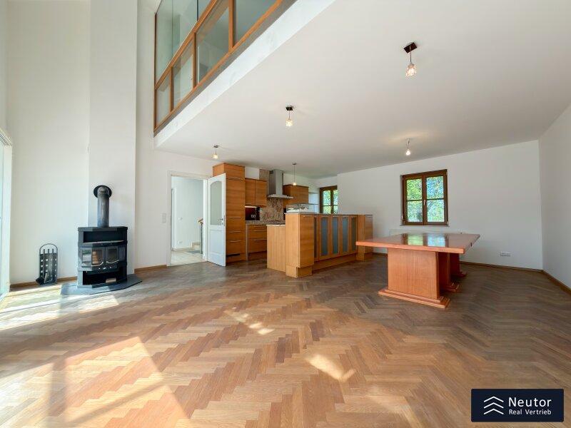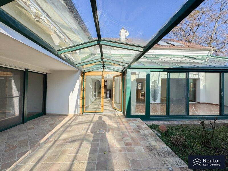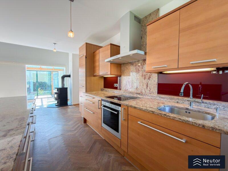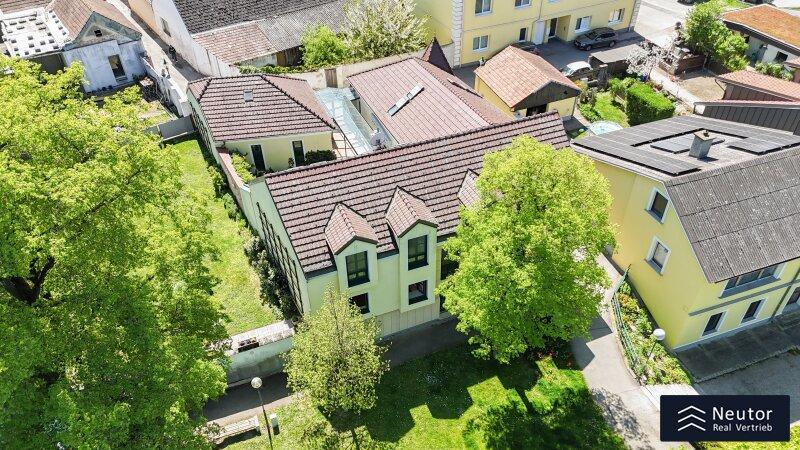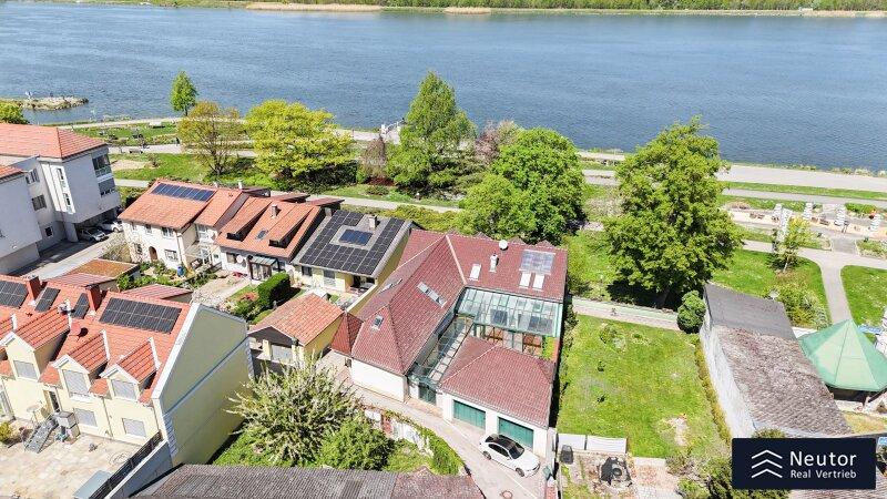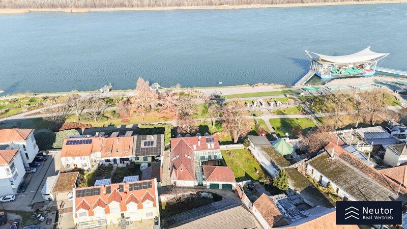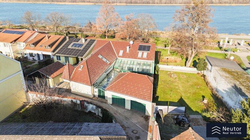 In unvergleichlicher Donauuferlage vereint dieses besondere Einfamilienhaus ein großzügig geplantes Raumkonzept mit hochwertiger, stilvoller Ausstattung. Auf zwei Ebenen präsentiert sich ein Zuhause, das Komfort, Eleganz und Naturverbundenheit harmonisch vereint und ideal für alle ist, die das Besondere suchen. Beim Betreten des Erdgeschosses empfängt Sie ein weitläufiger Vorraum, der mit seiner offenen Gestaltung viel Raum für eine Garderobe und einen stilvollen Empfangsbereich bietet. Das angrenzende Wohnzimmer mit Kamin schafft eine einladende Atmosphäre und bietet einen behaglichen Rückzugsort für entspannte Stunden mit Familie und Freunden. Die Küche überzeugt nicht nur durch Funktionalität, sondern auch mit einer großzügigen Fensterfront, die beim Kochen und Genießen einen traumhaften Blick auf die Donau eröffnet. Der direkt anschließende Wintergarten erweitert den Wohnbereich auf elegante Weise. Dank Klimaanlage und Heizung kann dieser ganzjährig genutzt werden und eignet sich ideal als Essbereich, Ruhe-Oase oder Ort für gesellige Stunden, stets begleitet vom Blick in den Garten. Vom Vorzimmer führt ein Gang zu einem separaten WC mit Handwaschbecken und Pissoir, einem praktischen Abstellraum mit Waschmaschinenanschluss, sowie einem weiteren Zimmer. Dieses lässt sich individuell als Kinder-, Gäste- oder Homeoffice-Zimmer einrichten. Zusätzlich bietet das Erdgeschoss ein großzügiges Schlafzimmer mit begehbarem Kleiderschrank. Das en suite Badezimmer ist eine wahre Wohlfühloase und bietet mit drei Handwaschbecken, Badewanne, Dusche und Bidet höchsten Komfort. Ein weiterer Abstellraum rundet das durchdachte Raumkonzept ab. Im Obergeschoss erwartet Sie ein Zimmer mit einer traumhaften Galerie, welches durch seine offene Gestaltung und den Blick in den Wintergarten besonders hell und einladend wirkt. Ein weiteres Zimmer bietet weiteren Platz für Gestaltungsmöglichkeiten und einen Blick auf die Donau. Ergänzt wird diese Etage durch ein Badezimmer mit Dusche, sowie ein separates WC mit Handwaschbecken. Zudem stehen ein Studio und ein Dachraum zur Verfügung, die vielfältige Nutzungsmöglichkeiten eröffnen - etwa als Hobbyraum, Atelier, Bibliothek oder zusätzlicher Stauraum. Zudem besteht die Möglichkeit, den Wunsch einer Terrasse zu verwirklichen, eine entsprechende architektonische Studie liegt bereits vor und zeigt, wie sich dieses Vorhaben durch einen gezielten Einschnitt in die Dachhaut elegant umsetzen lässt. Eine großzügige Doppelgarage sowie ein externer Abstellraum mit Wasseranschluss, bieten ausreichend Platz für Fahrzeuge, Gartengeräte und Freizeitutensilien. Ein besonderes Highlight dieses Hauses ist der direkte Zugang zum Donauufer über den hinteren Hauseingang - ideal für Naturliebhaber, Wassersportler oder alle, die gerne ausgedehnte Spaziergänge entlang des Wassers genießen. Mit seiner exklusiven Lage am Wasser, dem großzügigen Wohnraum und der hochwertigen Ausstattung bietet dieses Einfamilienhaus eine außergewöhnliche Wohnqualität - ideal für Familien, Paare oder Liebhaber gehobenen Wohnens, die ein besonderes Zuhause in idyllischer Umgebung wünschen.