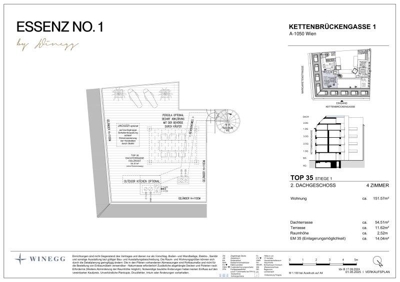 Die großzügige 4-Zimmer-Wohnung befindet sich im 2. Dachgeschoss und bietet eine Wohnfläche von ca. 152 m² sowie eine Terrasse mit ca. 12 m² und eine private Dachterrasse mit ca. 55 m². Die Raumaufteilung gliedert sich wie folgt: