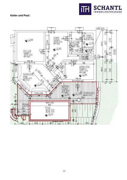 Kellerfläche: Ca. 45m² Waschküche + Lagerfläche (WM/Trockner-Anschluss + Waschbecken), Lagerflächen, sowie Heizraum.