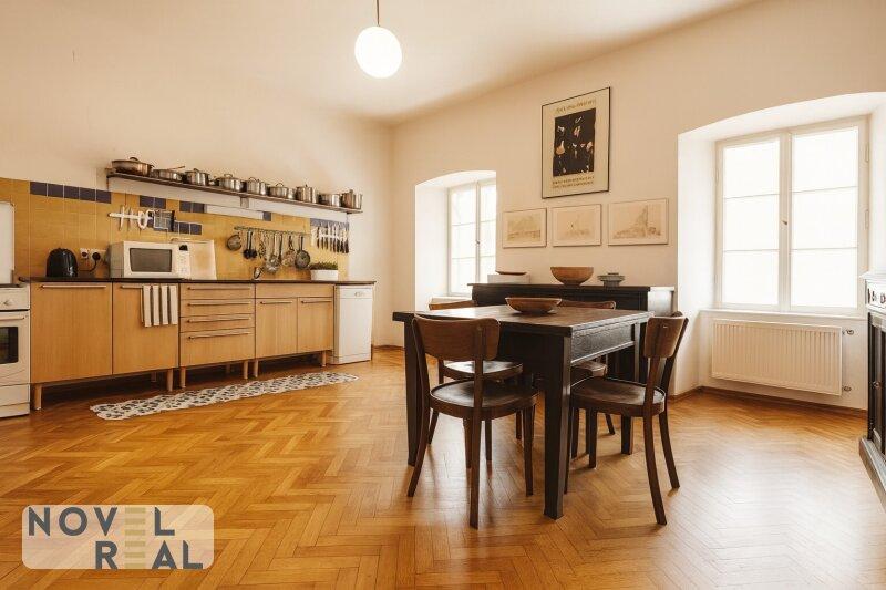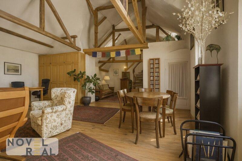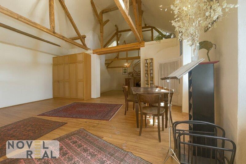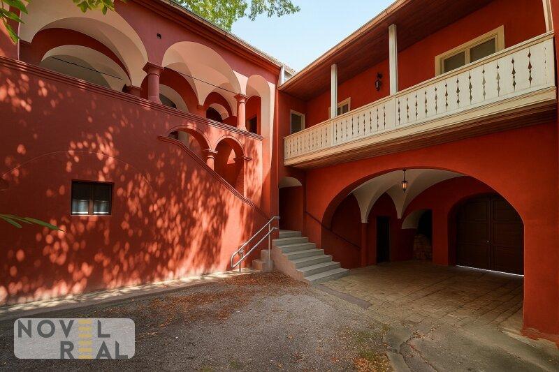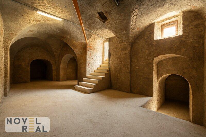 Auf dem Anwesen steht ein großzügiges Wohnhaus mit vier Einheiten, die sich je nach Bedarf zusammenlegen oder separat nutzen lassen. Ob als stilvolles Zuhause für mehrere Generationen, als repräsentativer Wohnsitz oder als charmante Gästeunterkunft die Optionen sind vielfältig. Ergänzt wird das Ensemble durch ein ehemaliges Lokal mit eigenem Zugang und einer Dachterrasse, das sich hervorragend für eine kreative Umgestaltung eignet. Der Dachboden, bislang kaum erschlossen, bietet zusätzliches Potenzial für großzügige Wohnideen im Einklang mit den Vorgaben des Denkmalschutzes. Die alten Gewölbekeller, einst für die Lagerung edler Weine genutzt, sind in bemerkenswert gutem Zustand und schaffen ein stimmungsvolles Ambiente für private Anlässe, kulturelle Veranstaltungen oder exklusive Verkostungen.