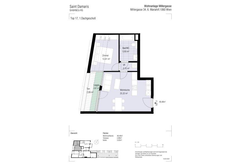Die 49,48 m² Wohnfläche bietet wie folgt: