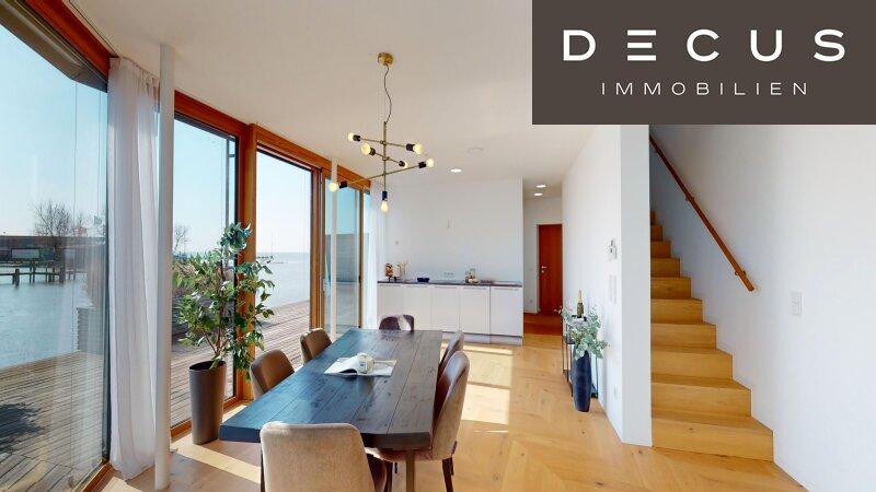 Dank der raumhohen Panoramaverglasung verschwimmt die Grenze zwischen Innen und Außen nahezu und ermöglicht es Ihnen, den See als integralen Bestandteil Ihres Wohnraums zu erleben. Hier können Sie den ganzen Tag die Sonne genießen und einen unvergleichlichen, ungehinderten Blick auf den See genießen.