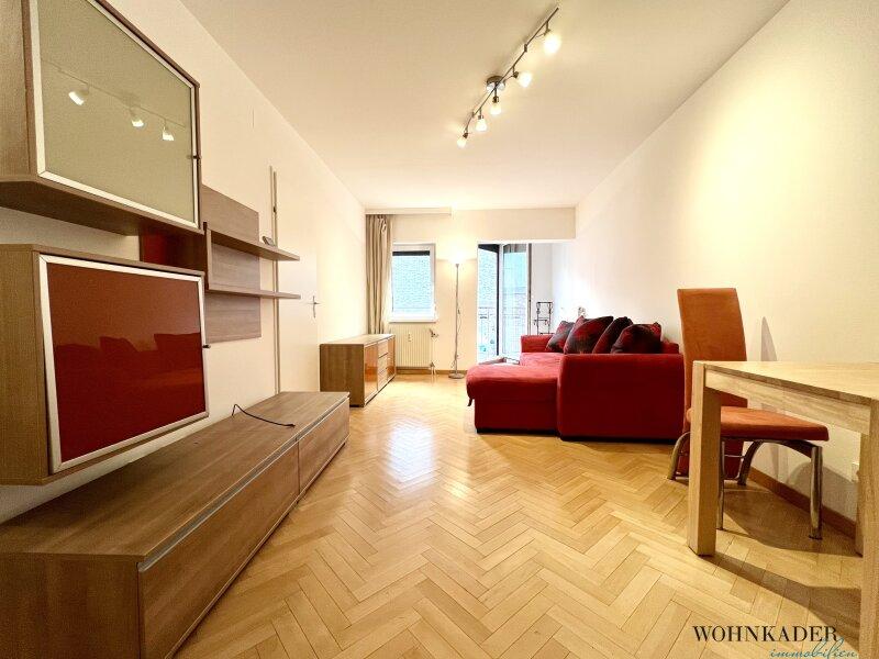Der zentrale Wohnmittelpunkt ist das großzügige Wohnzimmer mit direktem Zugang zum Balkon, der zusätzlichen Freiraum im Alltag schafft und sich ideal für eine kleine Sitzgruppe eignet. Durch die offene Verbindung zur voll ausgestatteten Küche entsteht ein modernes, kommunikatives Wohnkonzept mit kurzen Wegen und optimaler Raumnutzung.