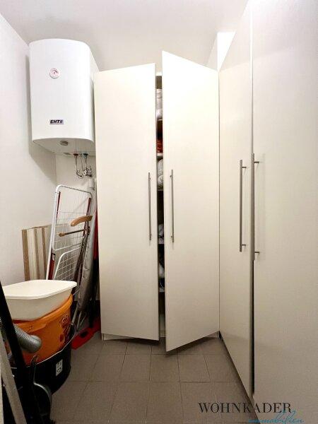 Ein praktischer Abstellraum mit Regalsystem bietet wertvollen Stauraum für Haushaltsgeräte, Vorräte oder Sportequipment. Das großzügige Badezimmer mit WC sorgt für angenehmen Komfort im täglichen Gebrauch. Der geräumige Vorraum bietet ausreichend Platz für Garderobe und zusätzliche Aufbewahrungslösungen.