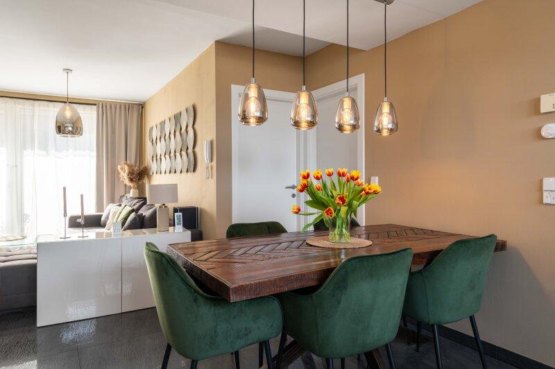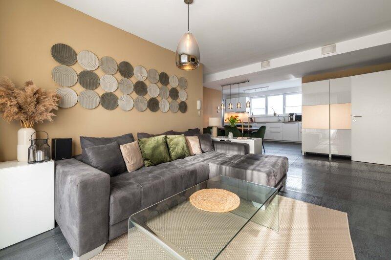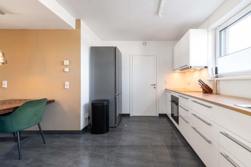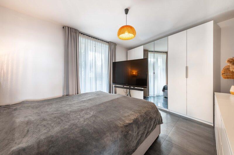 Besonders hervorzuheben ist die hochwertige Ausstattung der Wohnung. In den Wohnräumen wurden edle, großformatige Fliesen in moderner Anthrazit-Optik verlegt. Beheizt wird die Wohnung über eine energieeffiziente Fußbodenheizung mittels Erdwärme, welche verbrauchsabhängig abgerechnet wird.