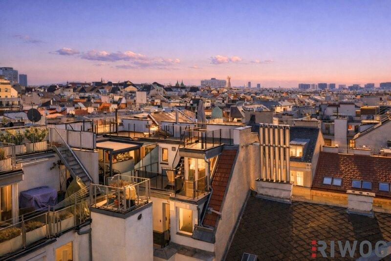 360° CITY VIEW - STYLISCHE DACHGESCHOSSMAISONETTE MIT TERRASSE UND DACHTERRASSE NÄHE 1.BEZIRK / WIEN MITTE / U3 / U4 / ROCHUSMARKT / URANIA - Objektnr. 5632163