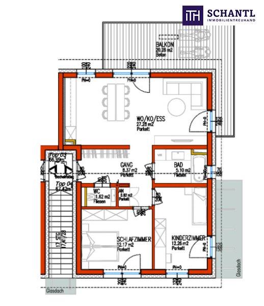 Das Highlight dieser lichtdurchfluteten Traum-Wohnung stellt neben den Raumhohen Decken (bis zu 4,5 m) im OG, ganz klar der großzügige 20 m² große Balkon dar, auf welchem Sie gemütlich ein Gläschen Wein genießen und vom Alltag abschalten können. Weiters besticht diese traumhafte 3-Zimmer Wohnung durch die offene Wohnraumgestaltung in Richtung Süd-Ost und die geniale Grundrissgestaltung - alle Zimmer sind mit großzügigen Fensterflächen ausgestattet.