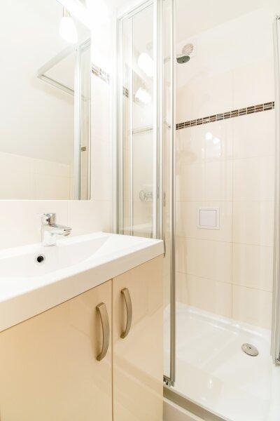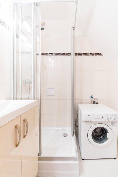 - Badezimmer mit Dusche und Waschmaschinenanschluss
