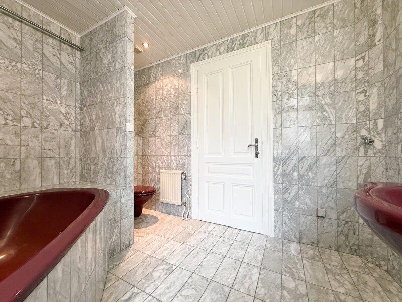 Im Vorraum wurde die Decke im Zuge früherer Elektroinstallationen teilweise abgehängt; diese Maßnahme kann bei Bedarf rückgebaut werden, um die ursprüngliche Raumhöhe wiederherzustellen.