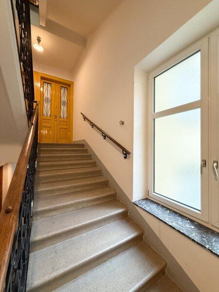 Die Wohnung liegt im ersten Stock eines gepflegten Altbauzinshauses und ist über ein klassisches Stiegenhaus erreichbar. Vom großzügigen Vorraum aus erschließen sich die einzelnen Räume der Wohnung.