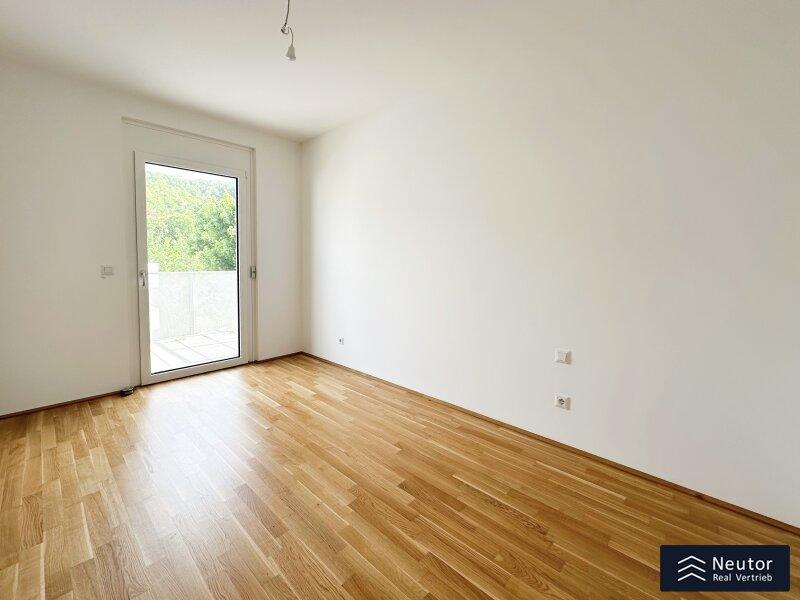 Umgeben vom Grünen werden Sie an dieser Adresse empfangen. Sie betreten Ihre neue Wohnung über einen Vorraum, welcher ausreichend Platz für eine Garderobe bietet. Von hier aus erreichen Sie zentral begehbar alle Räume. Das Badezimmer befindet sich rechterhand vom Vorraum. Dieses wurde großzügig angelegt und begeistert mit einer Dusche, einem WC und einer schlichten Verfliesung. Das Herzstück der Wohnung, das Wohnzimmer, punktet mit einer modernen EWE Einbauküche. Diese wurde voll ausgestattet und offeriert hochwertige Küchengeräte. Das Wohnzimmer zeigt sich sonnendurchflutet mit einem grünen Blick sowie einem direkten Zugang zum Balkon. Dieser bietet absolute Ruhe und lädt förmlich zum Verweilen ein. Praktischerweise beherbergt dieser einen Strom- und Wasseranschluss, somit steht einem netten Grillabend oder einer Bepflanzung nichts mehr im Wege. Das Schlafzimmer zeigt sich ebenfalls mit Balkonzugang und angenehmer Ruhe. Für eine optimale Beschattung besitzt diese Wohnung elektrische Raffstores. Um sich lästige Parkplatz Suchen zu ersparen besteht die Möglichkeit bis zu zwei Stellplätze in der Hauseigenen Tiefgarage anzumieten. Für den optimalen Eyecatcher wurde in der Wohnung hochwertiger Parkettboden verlegt. Die Wohnung verspricht einen absoluten Wohlfühlcharakter, tolle Freizeitaktivitätsmöglichkeiten wie Wanderwege sowie absolute Ruhe.