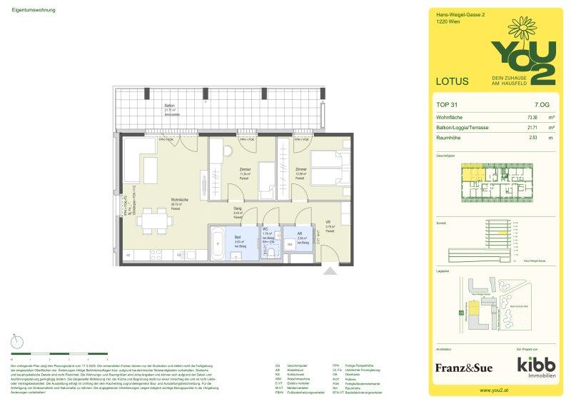 LOTUS: 53 Eigentumswohnungen (1 bis 4 Zimmer von 33 bis 87 m², 8 Geschosse, KFZ-Plätze, frei finanziert, Gemeinschaftsflächen, HWB 18,4, fGEE: 0,54)