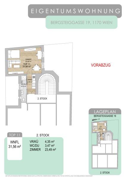 Die Wohnung befindet sich im 3. Stock (letzter Stock) ohne Lift und ist vollständig hofseitig ausgerichtet.