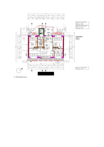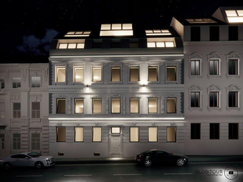 Der Aus- und Umbau des Gebäudes wurde bereits genehmigt und ergibt eine geplante Wohnnutzfläche von insgesamt ca. 573 m2. Geplant sind 10 Wohnungen, mehrere Terrassen, eine Dachterrasse und ein Gemeinschaftsgarten auf Erdgeschoss, zwei Obergeschossen und zwei Dachgeschossen. Ebenso ist die Errichtung eines Lifts bereits bewilligt. Der Dachgeschossausbau würde eine weitere Wohnfläche von ca. 212 m² sowie ca. 40 m² Terrassenfläche schaffen.