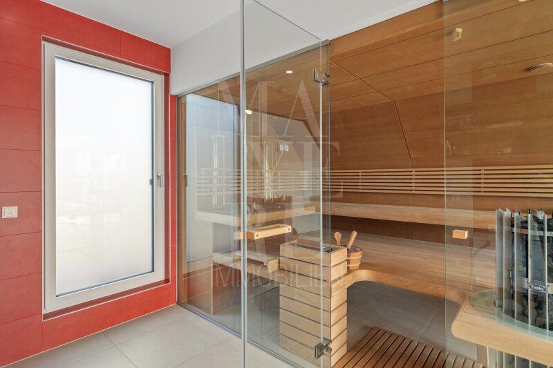- Loxone BUS-System zur Steuerung von Licht, Raffstores, Heizung, Zutritt, Gartenbewässerung und Sauna