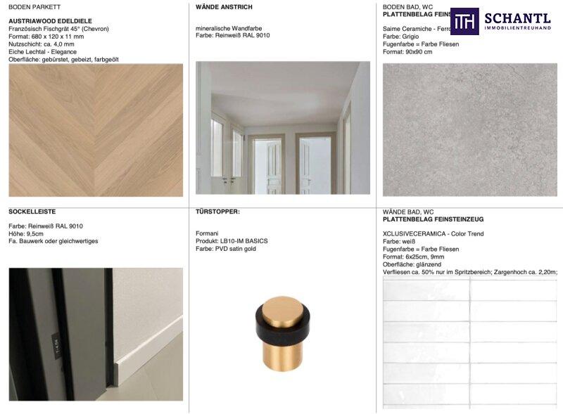FACTS: Das Penthouse verfügt über eine Sicherheitstüre und eine private Liftfahrt direkt bis in das zweite Dachgeschoss. Eine eigene Luftwärmepumpe in Kombination mit Photovoltaik am Dach sorgt für effiziente Energieversorgung. Fußbodenheizung, Fußbodenkühlung, Deckenheizung und Deckenkühlung bieten höchsten Wohnkomfort. Die Vorbereitung für eine Klimaanlage wird bauseits errichtet, ebenso ein elektrisches Zutrittssystem und eine Alarmanlage. Die Video-Gegensprechanlage lässt sich bequem per App steuern. Dachflächenfenster mit elektrischen Außenrollos sowie Vertikalverglasungen mit elektrischen Außenjalousien gewährleisten optimalen Sonnenschutz. Die Innentüren sind wahlweise im Alt-Wien-Stil ausgeführt. Hochwertiges Fischgrätparkett und großformatiges Feinsteinzeug prägen das edle Wohnambiente. In Bad und WC sorgen LED-Deckenspots für stimmige Beleuchtung. Die Terrassen sind mit Feinsteinzeug oder Holzdielen ausgestattet.