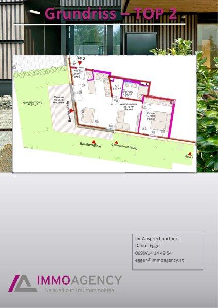 Das vorliegende Top 2 befindet sich im Erdgeschoß und ist nach Osten - Süden und Westen ausgerichtet.