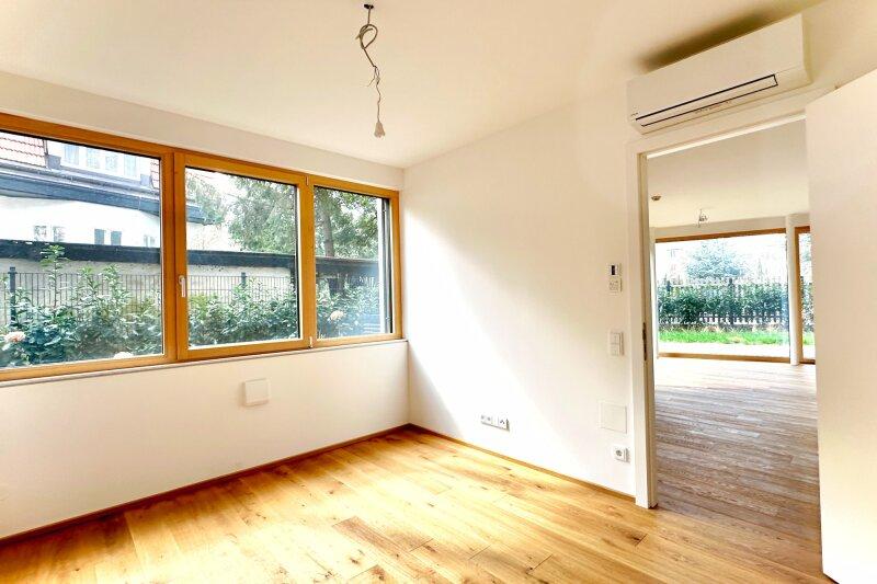 Was im Haus beginnt, soll in der Wohnung nicht enden: auch hier wurde auf Nachhaltigkeit und Langlebigkeit geachtet. Die stumpf anschlagenden Türen (Eingangstüre als Sicherheitstüre mit Sicherheitsbeschlägen) sind als Weißlacktüren in 2,20 cm Überlänge ausgeführt. Dies ergibt, in Kombination mit den ca. 2,70 Meter hohen Räumen, ein großzügiges Raumgefühl. Die bodentiefen, fast raumhohen Fenster, runden das Gesamtpaket gekonnt ab.
